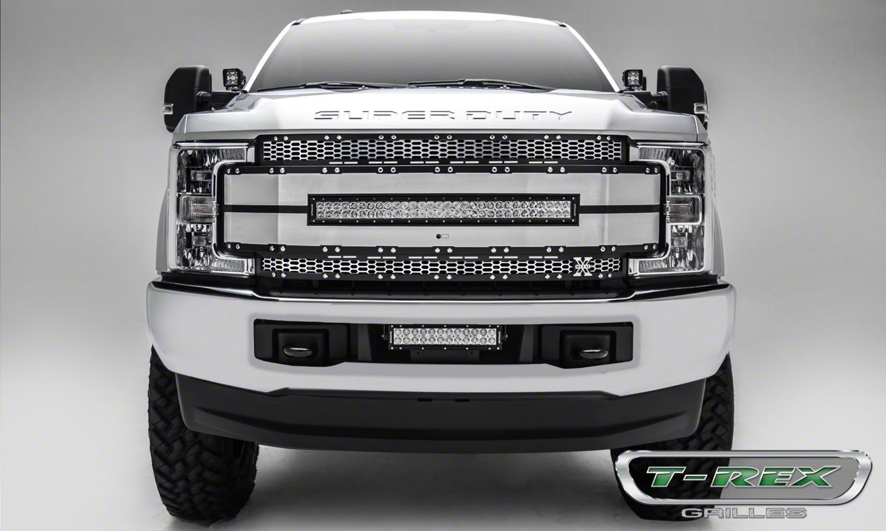 Superior Upper Replacement Grille. Make your Ford Super Duty truck look even tougher with this T-REX Torch AL Series Upper Replacement Grille With 30-inch LED Light Bar. This heavy-duty replacement grille features an intimidating design and durable construction that fortifies your vehicle’s front end. It also features a powerful LED light bar, so you can drive at night with improved visibility and safety.
