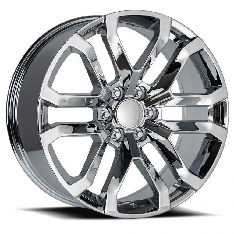 2019 Denali Replica Chrome 6-Lug Wheel; 22x9; 24mm Offset: Redefine your vehicle's style with the 2019 Denali Replica Chrome 6-Lug Wheel. This wheel's elegant design and striking finish embody a blend of sophistication and boldness, perfectly complementing a wide array of vehicle aesthetics. Crafted from high-quality materials, it's a testament to durability and style.