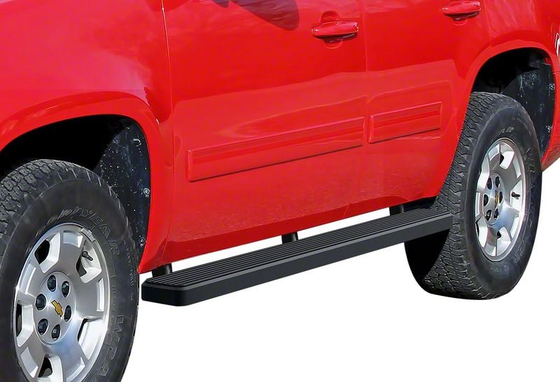 Style and Safety. Elevate your Tahoe's appearance and functionality with the sleek 5-Inch iStep Running Boards; Black. With a generous 5-inch width, these running boards provide a stable and spacious stepping surface. Whether you're stepping in or out of your vehicle, the wide boards offer maximum traction and security, especially in wet or icy conditions.