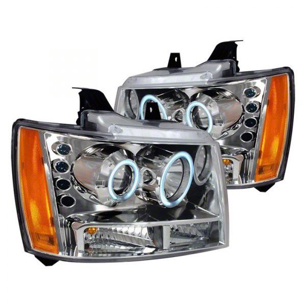 Description. Custom CCFL Halo Chrome projector headlights for 2007-2014 Chevy Avalanche. Package contains a pair (both left & right side head lamps). Enhance the appearance of your Chevy Avalanche with these custom CCFL Halo Chrome projector headlights while improving visibility and driving safety. Meets all federal regulations for highway use.