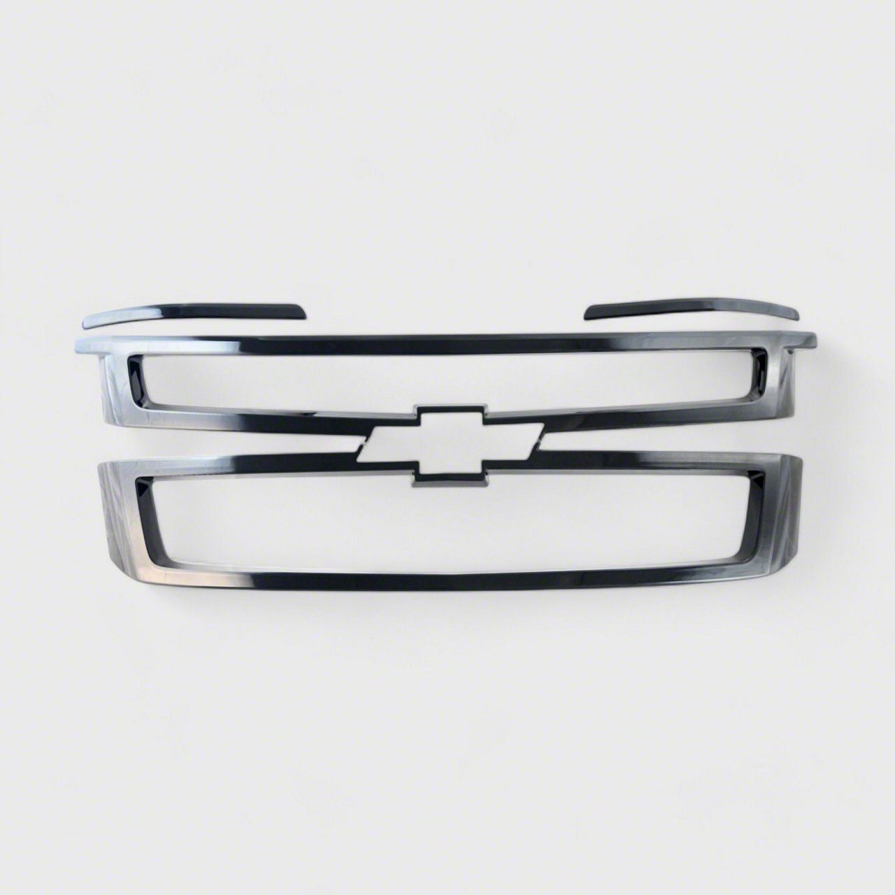 Sleek, Modern Front-End Styling. This overlay transforms the factory chrome grille accents into a seamless gloss-black look, giving the front end a stealthy, contemporary appearance. It covers chrome bars and highlights without permanent alteration, allowing easy reversion to stock.