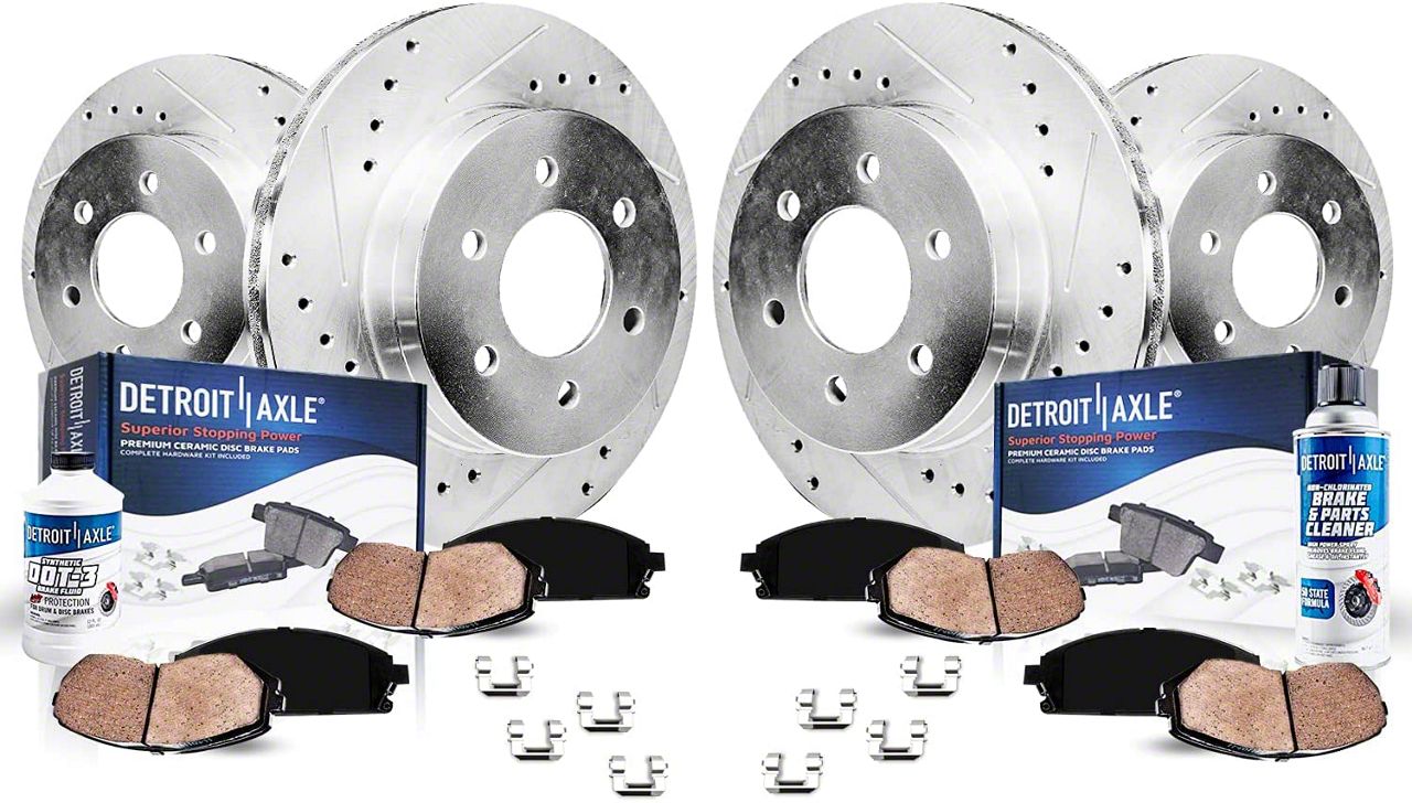 High-Performance Brake Upgrade. The Drilled and Slotted 6-Lug Brake Rotor, Pad, Brake Fluid, and Cleaner Kit provides a complete front and rear brake upgrade for your Tahoe. Featuring drilled and slotted rotors for improved heat dissipation and high-quality brake pads for reduced fade, this kit enhances overall stopping power and braking consistency. The included brake fluid and cleaner ensure a full-service maintenance solution.