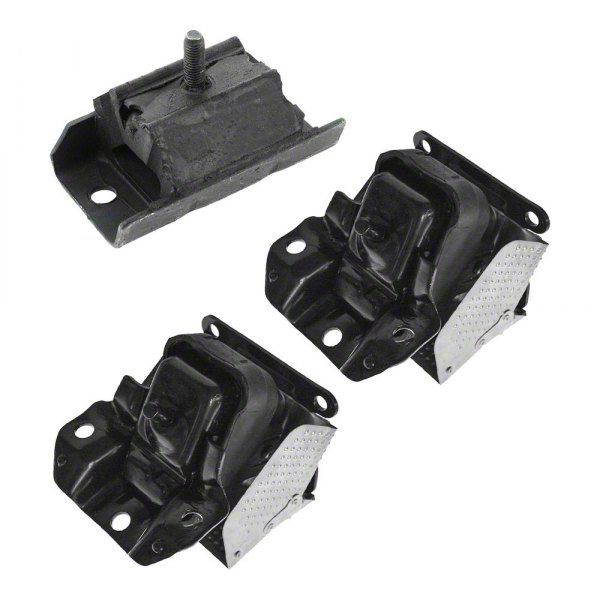 Support and Hold. Make sure your engine and transmission are properly secured in their place with the 3-Piece Engine and Transmission Mount Kit. This 3-piece kit replaces the old and failing mount. This upgrade ensures the engine and transmission are held and supported, and any vibrations that happen when the engine is running are isolated.