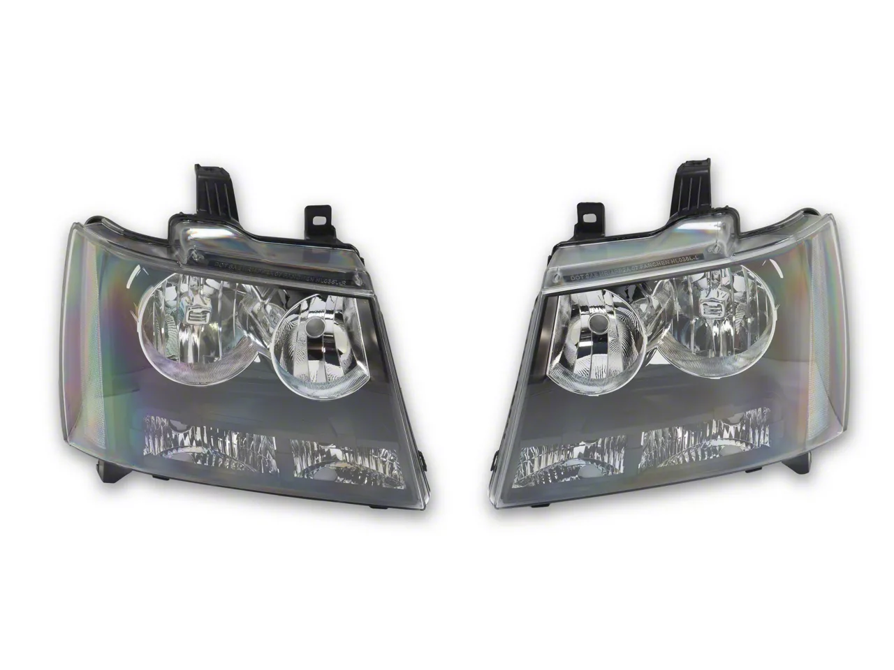 Application. The Factory Style Headlights with Clear Corners; Black Housing; Clear Lens fits all 2007-2014 Chevrolet Tahoe models.