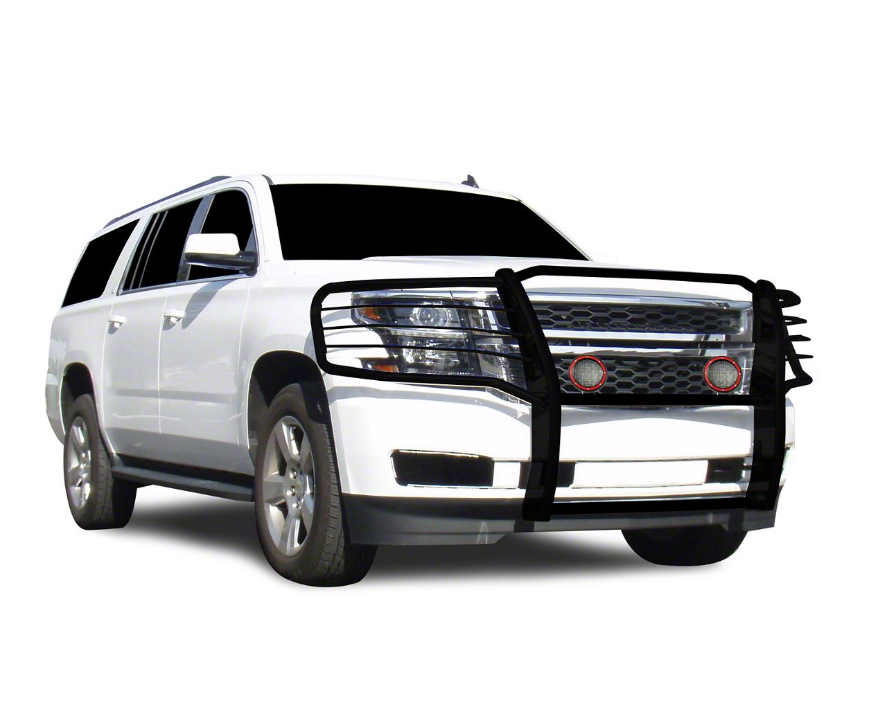 Application. This Grille Guard with 5.30-Inch Red Round Flood LED Lights (Black) fits all 2015-2020 Chevrolet Tahoes without Active Grille Shutters.