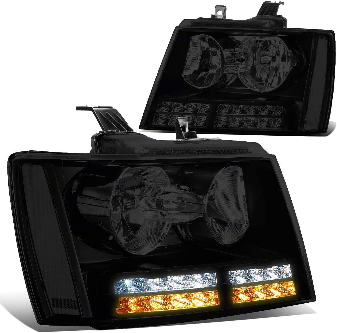 Advanced Illumination. These Headlights are designed to enhance visibility and vehicle aesthetics for the Tahoe. Featuring LED Daytime Running Lights and LED turn signals, they provide superior illumination and longer life compared to traditional bulbs. The clear corners and smoked lens design not only improve the lighting efficiency but also add a stylish, modern look to the vehicle.