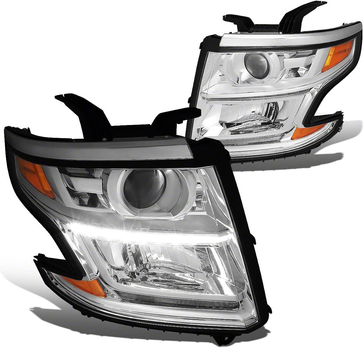 Application. This LED DRL Projector Headlights with Amber Corners fits 2015-2020 Chevrolet Tahoe models with factory halogen headlights.