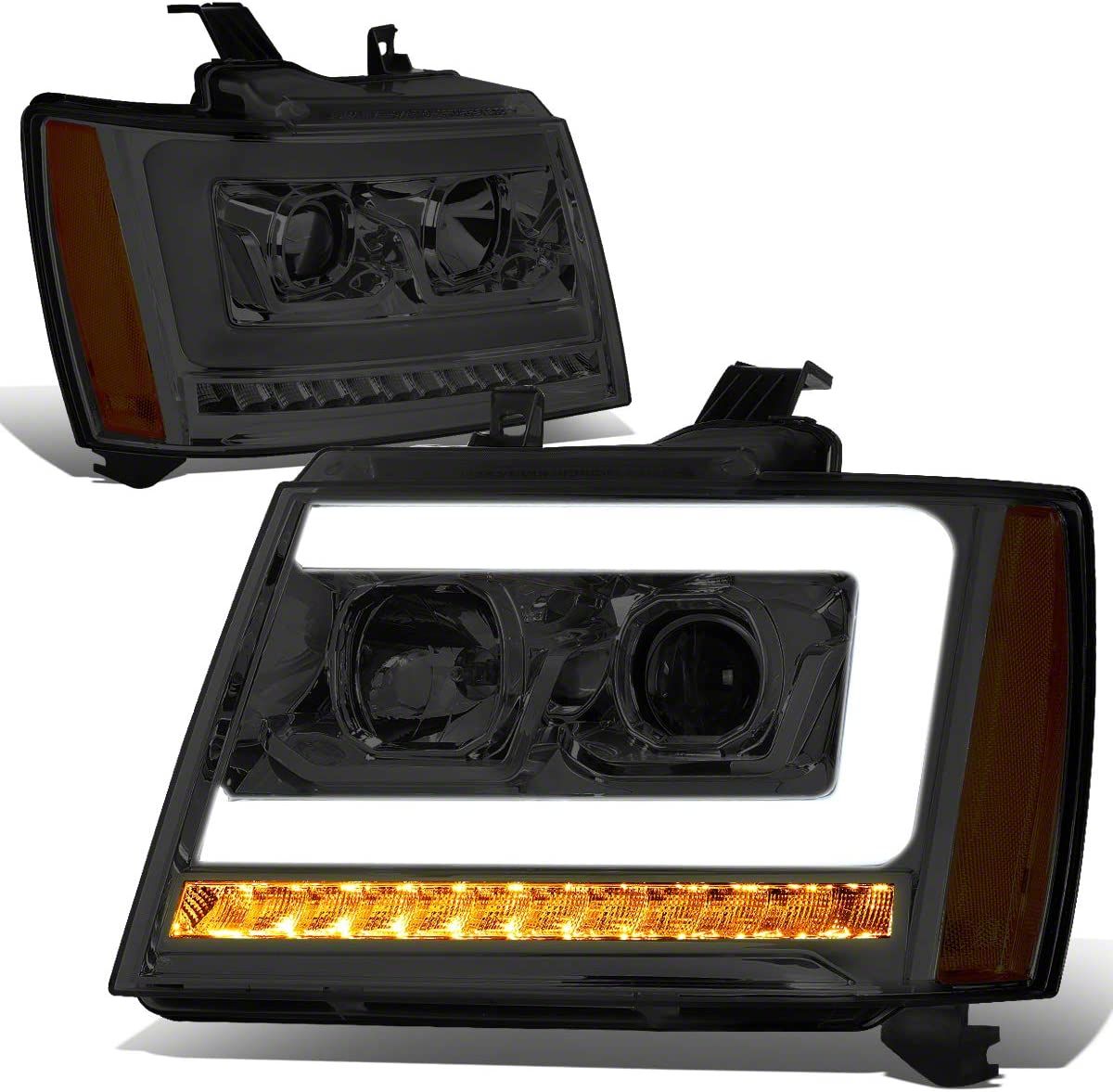 LED DRL Projector Headlights with Amber Corners; Chrome Housing; Smoked Lens (07-14 Tahoe)