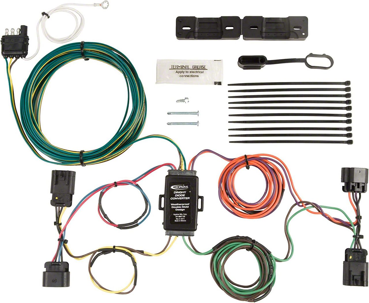 Description. Hopkins Plug-In Simple! Towed Vehicle Wiring Kits incorporate vehicle specific harnesses and the necessary diodes to operate the tail, brake and turn light functions needed for towed vehicles behind RVs.