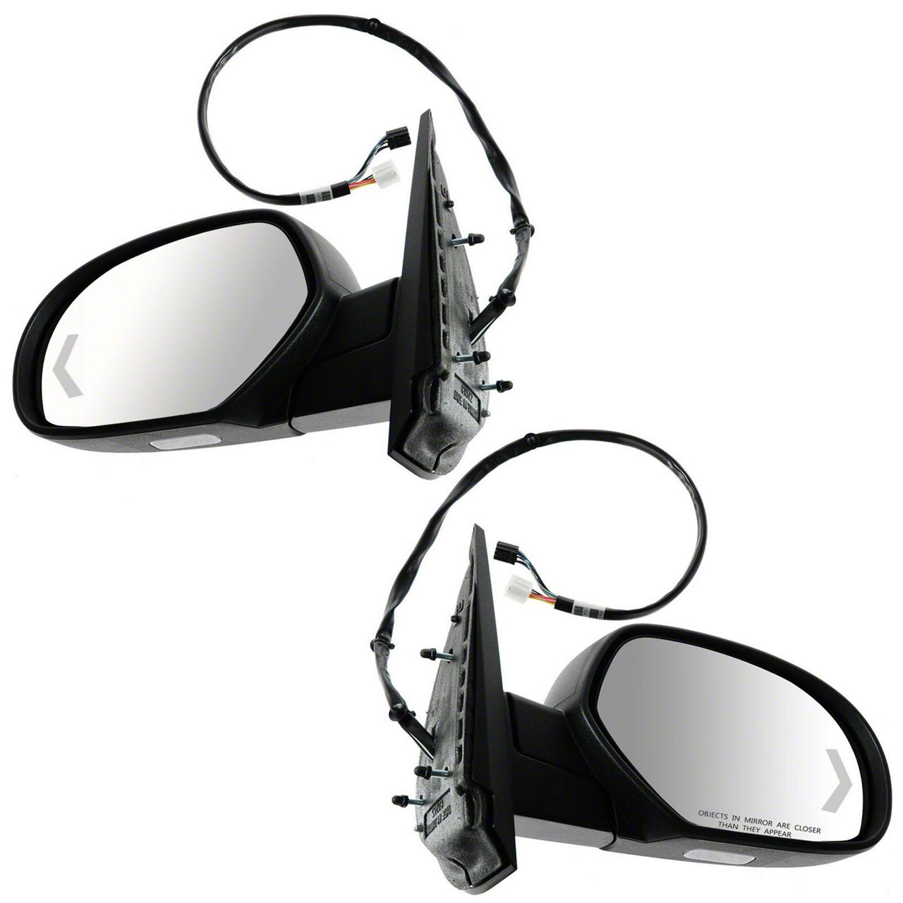 Enhanced Visibility Upgrade. These Powered Heated Mirrors with Smooth Arrow Turn Signal (Textured Black) provide increased visibility and convenience for drivers, especially in challenging weather. Designed for seamless power adjustment and equipped with integrated turn signal indicators, these mirrors improve safety while offering a sleek, aerodynamic appearance. They help reduce wind noise and turbulence for a quieter, more comfortable driving experience.