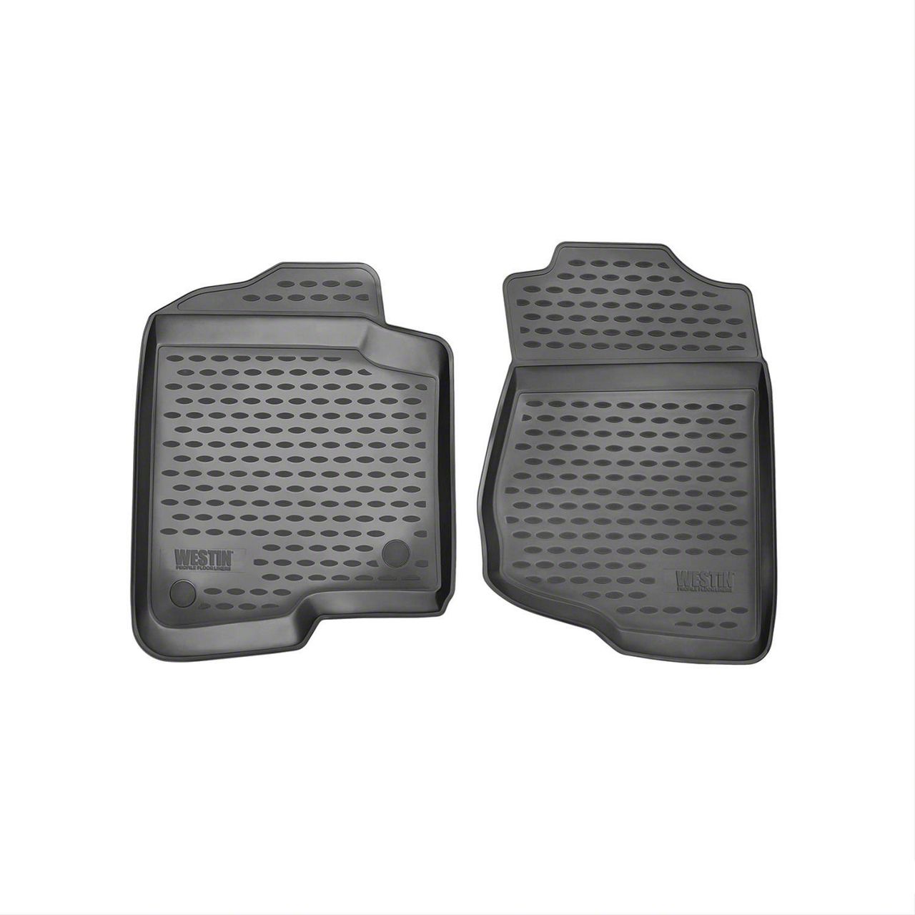 Description. Westin's Profile Floor Liners Front Row protects the driver and passenger side floor areas from daily wear and tear. The durable and odorless rubberized polymer material maintains its shape in heat, cold or from heavy loads. They feature a raised textured surface that provides great traction and can be easily cleaned with soap and water. Front row liners are designed to accommodate vehicles equipped with retainer hooks where applicable. Great for all seasons!