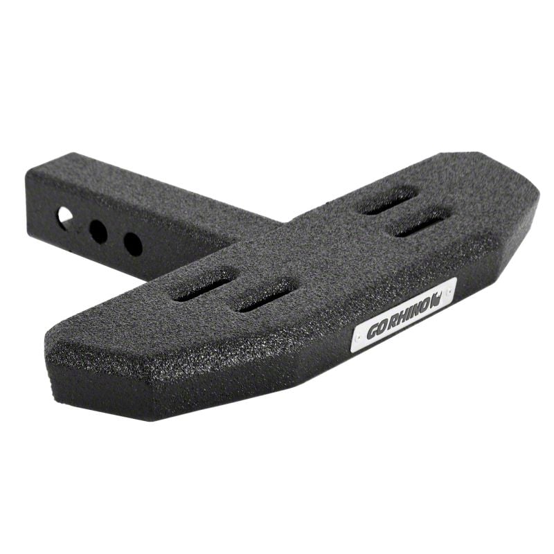 Convenient Access Step. The Go Rhino RB30 Slim Hitch Step for 2-Inch Receiver helps make your truck bed or rack more accessible by providing a 4.75-inch non-slip stepping surface. This hitch step also offers additional protection from minor rear-end impacts, enhancing both functionality and safety.