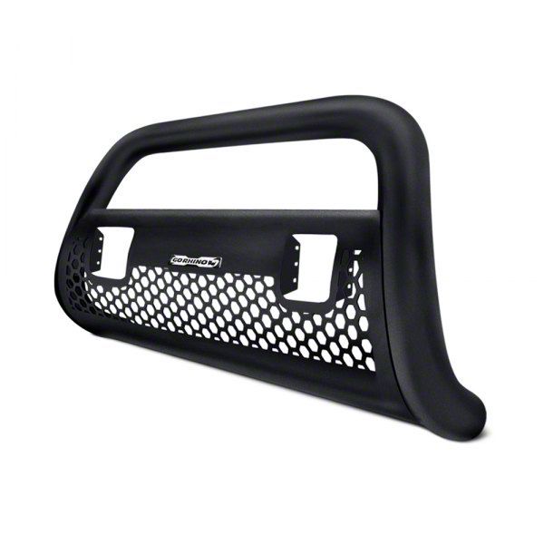 Description. Go Rhino's RC2 LR Bull Bars offer updated styling and the ability to combine today’s popular LED lights with front-end protection. The 3" diameter tubular steel frame features a galvanized steel skid plate with a stylish hexagonal cut out pattern. Different styles are available with light mounts for one 20" single row light bar, two 3" cube lights or four 3" cube lights. In addition, all RC2 LR Bull Bars have pre-drilled light mount holes across the center crossmember. The RC2 LR is available as a standalone; as a kit that includes vehicle-specific mounting brackets; or as a kit that includes both mounting brackets and LED lights. Installation is easy with no drilling required. RC2 LR Bull Bars come with a Limited Lifetime warranty on materials and construction and a 5 year warranty on the Textured Black Finish.