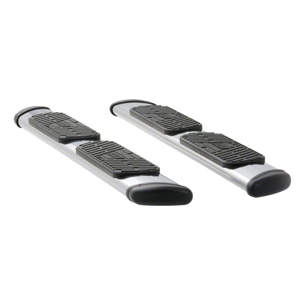Not everyone understands the status that comes with owning a full-size truck or SUV, but for those who do, LUVERNE Regal 7 oval side steps are the side accessory of choice. They are the largest oval nerf bars on the market, featuring a patented design, non-skid step pads and a sleek nerf bar styling. Built on the idea that a deluxe ride needs a deluxe entrance, these 7" ovals have a width comparable to some of the largest running boards available. This, combined with the classic styling of popular nerf bars, allows Regal 7 oval side steps to easily live up to their name. Each is set with full-width step pads that offer a non-skid surface for ultimate comfort and safety. They are also capped on each end with contoured end caps, giving them a professional look and added protection against small rocks and road debris. This package includes the side steps only and requires mounting brackets for a complete installation (sold separately). This set of side steps fits a variety of vehicles from Chevrolet, Dodge, Ford, GMC, Ram and Toyota (see application info for exact fitment).