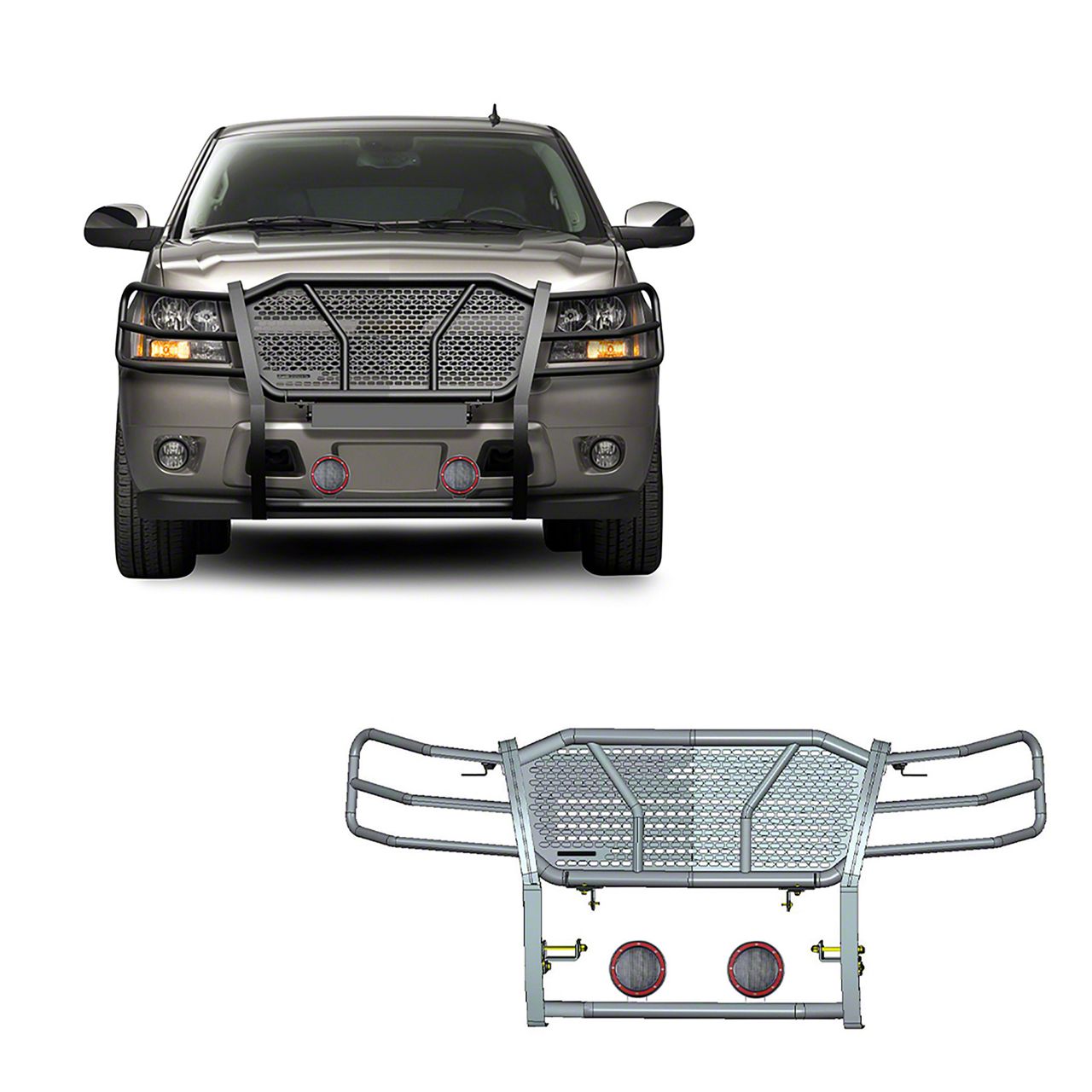 _x000D__x000D_Construction and Appearance. Crafted from 16 gauge cold-rolled, mandrel-bent mild steel tubing with 5/16" thick HRPO steel plates, the grille guard features a durable 3-piece bolt-together assembly. It is finished with a powder-coated black topcoat over a corrosion-resistant e-coat, ensuring long-lasting wear resistance and an aggressive matte black look.
