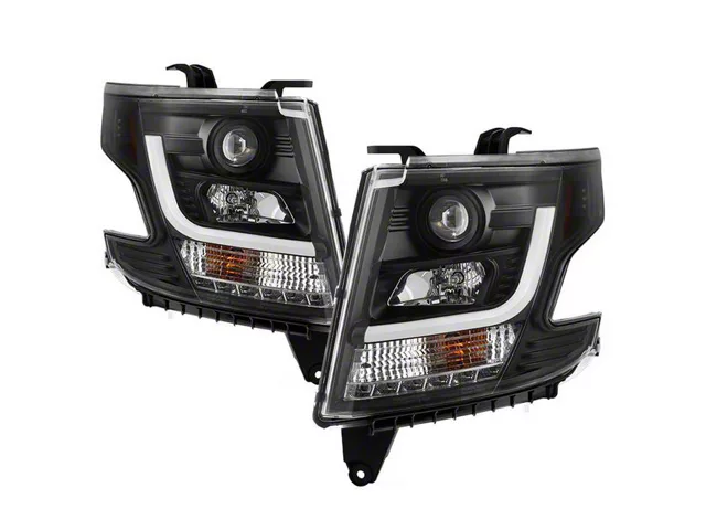 Advanced Lighting Upgrade. The LED Projector Headlights are designed for 2015 - 2018 Tahoe models, providing a significant upgrade in visibility and style. With matte black housing and a clear transparent lens, these DRL model headlights not only enhance the vehicle's appearance but also improve safety with superior lighting. Built by OEM approved and ISO certified manufacturers, they ensure quality and reliability.