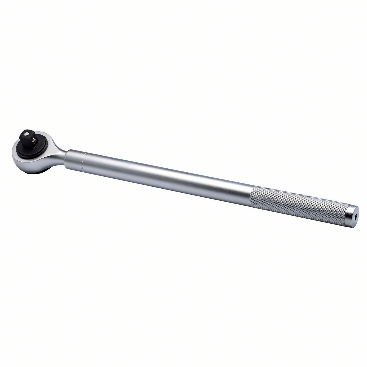 Features a twist reverse for fully reversible ratcheting action Can be extended from 21 inches to 33 inches for longer reach in hard-to-access areas Equipped with a 72 teeth ratchet mechanism for outstanding accessibility in confined spaces Quick release drive head allows for locking and releasing sockets and accessories with one hand Knurled handle provides a firm non-slip grip for maximum torque Made from chrome vanadium steel with a satin finish for strength, durability, and long life Ideal for working on tires and wheel fittings.