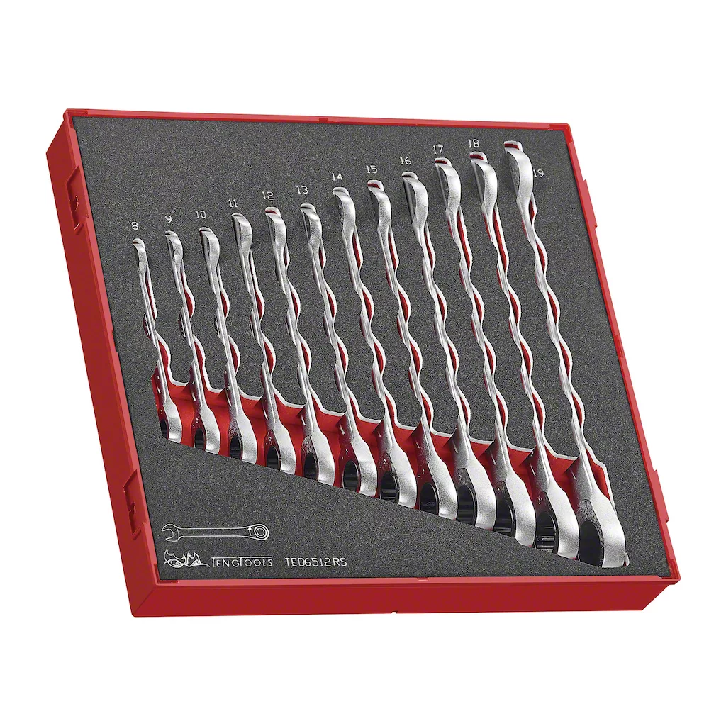 Teng Tools Ratcheting Combination Wrench Set in Foam Tray; 8 to 19mm
