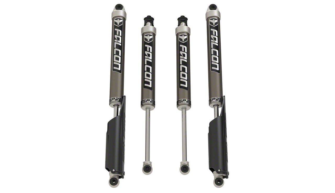 Maximum Damping Performance. Take your Super Duty’s damping performance to whole 'nother level with the Teraflex Falcon Sport Shocks for 0 to 2-Inch Lift. These shocks are the perfect upgrade for your truck with up to 2 inches of lift. Specifically, these shocks feature a monotube design that’s maximized for the trails and the highway. This translates to damping performance that delivers more precise off-road handling and on-road ride comfort.
