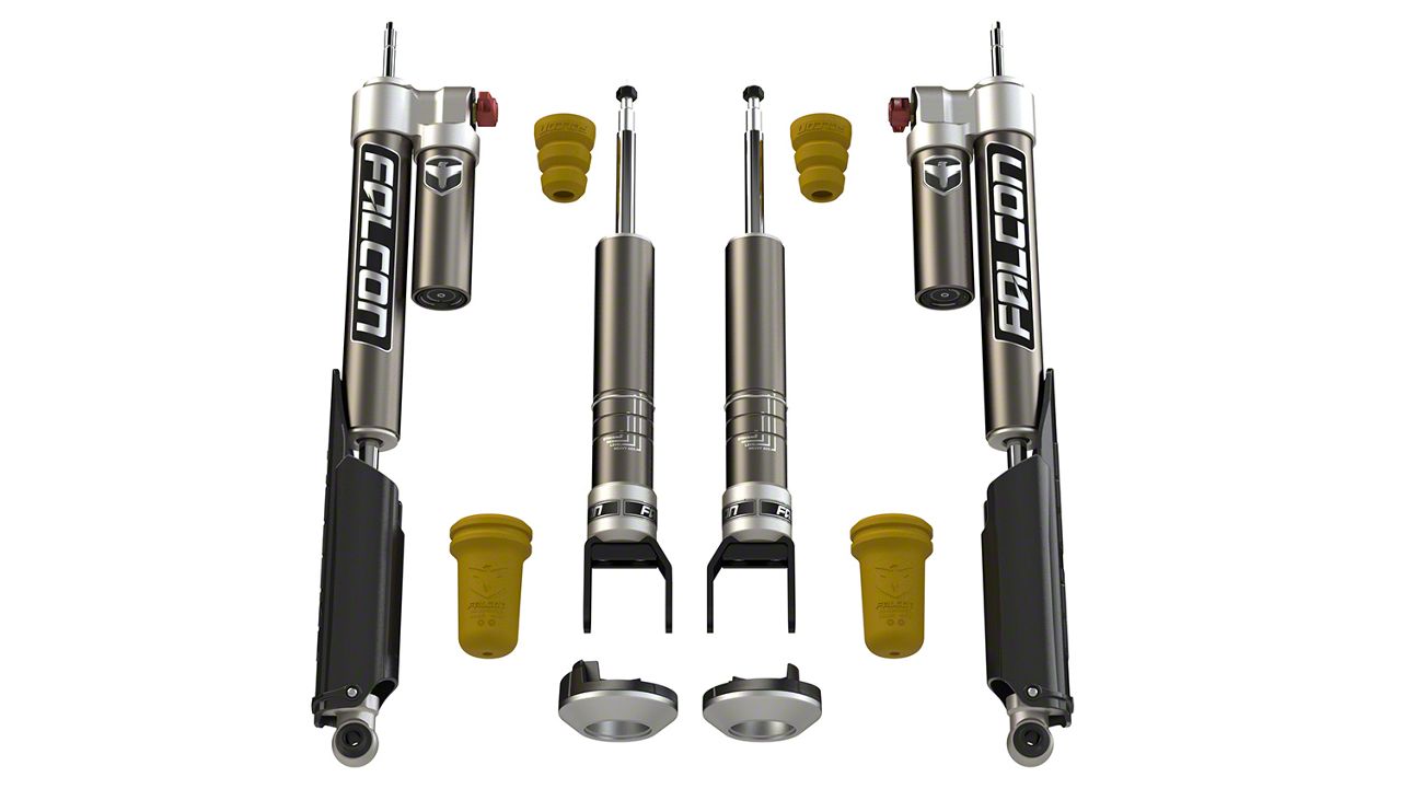 Front Lifted Monotube Shocks. This system features a pair of high-performance Falcon monotube front shock absorbers. These front shocks are designed to provide 2.25 inches of lift to level-off your front to your rear giving you a bold new stance. More importantly, the shocks’ monotube design is tuned for optimal driving both on and off-road. This translates to improved off-road handling and control, and excellent ride comfort for the highway.