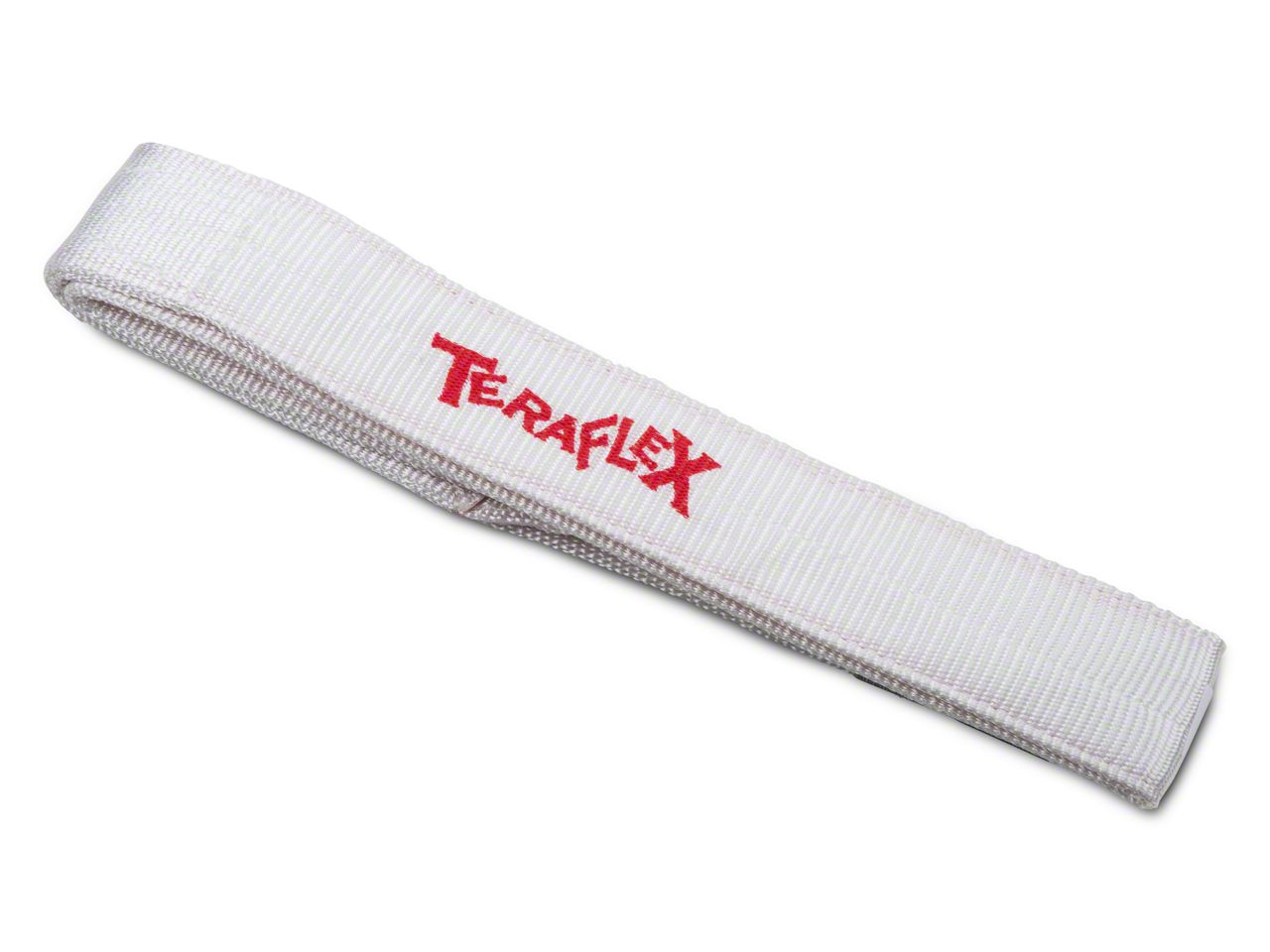 Extreme Flexibility. This strap is made out of Nylon giving it flexibility but extreme strength at the same time creating an incredibly durable strap. It measures 3 inches by 7 feet with reinforced end loops. The strap is white in color with the red Teraflex logo.