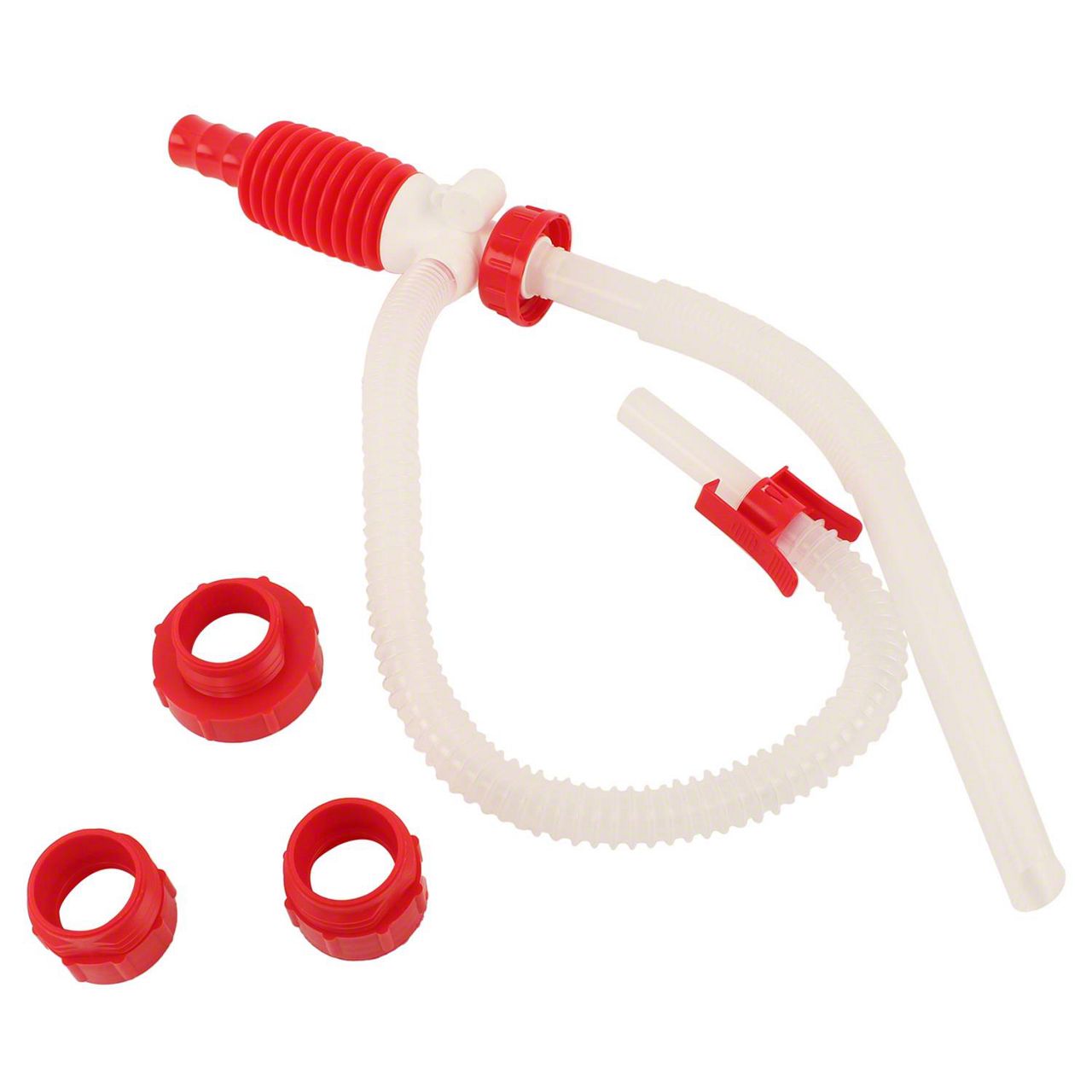 Description. Tera Pump manual gas can fuel transfer pumps are designed for use with most North American gas cans. They deliver a flow rate of 3.2 gpm and include a 3-pack of fuel can adapters compatible with Midwest, No-Spill, Scepter, Briggs & Stratton and Garage BOSS (gas can not included). The flexible suction tube adjusts to fit containers of various heights.