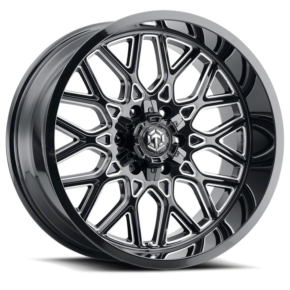 Terra Offroad TR-10 Glossy Black Milled 6-Lug Wheel; 22x10; -25mm Offset exudes sophistication with its finish, offering a sleek and modern appeal to any vehicle it adorns. The design is meticulously crafted to enhance the aesthetic of your vehicle, giving it a distinctive and upscale look. Perfect for those seeking to elevate their vehicle's style, this wheel blends seamlessly with both contemporary and classic vehicle designs, making it a versatile choice for a wide range of vehicles. Its robust construction ensures durability, making it a reliable choice for drivers who value both style and quality.