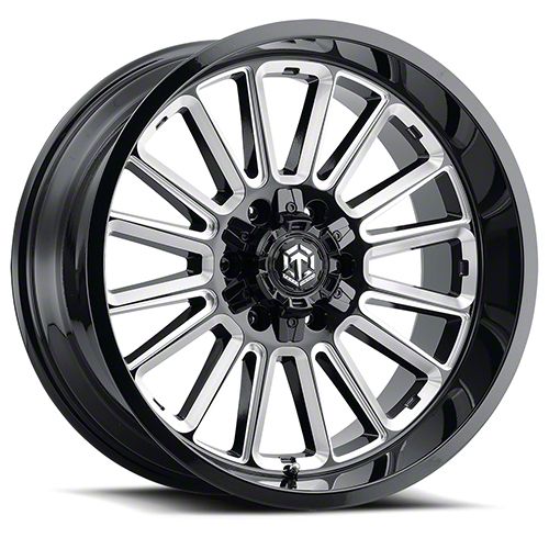 Terra Offroad TR-8 Glossy Black Milled 6-Lug Wheel; 22x10; -25mm Offset. The Terra Offroad TR-8 Glossy Black Milled 6-Lug Wheel offers a striking balance of style and refinement. Its unique design accentuates the vehicle's aesthetic, while the premium construction underscores its robust nature. This wheel is a perfect choice for those seeking both elegance and a strong visual statement.