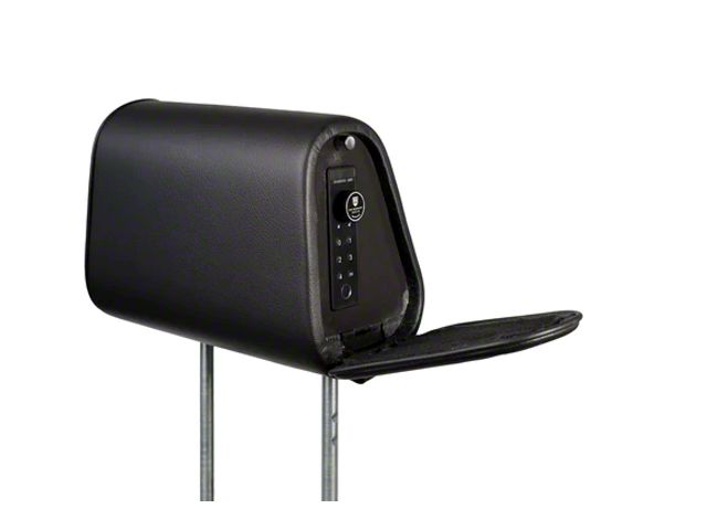 Discreet 18-Gauge Steel. Discover the ultimate solution for discreet in-car storage with The Headrest Safe Co. Headrest Safe. Designed for the passenger side, this innovative headrest safe offers a secure and convenient storage space for your valuables while on the go. Constructed from an 18-gauge steel body and a 16-gauge steel door, this headrest safe guarantees the utmost security and durability, ensuring your belongings stay protected at all times.
