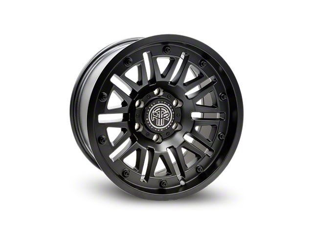 Thret Offroad Storm Satin Black 6-Lug Wheel; 20x9; 0mm Offset exudes sophistication with its finish, offering a sleek and modern appeal to any vehicle it adorns. The design is meticulously crafted to enhance the aesthetic of your vehicle, giving it a distinctive and upscale look. Perfect for those seeking to elevate their vehicle's style, this wheel blends seamlessly with both contemporary and classic vehicle designs, making it a versatile choice for a wide range of vehicles. Its robust construction ensures durability, making it a reliable choice for drivers who value both style and quality.