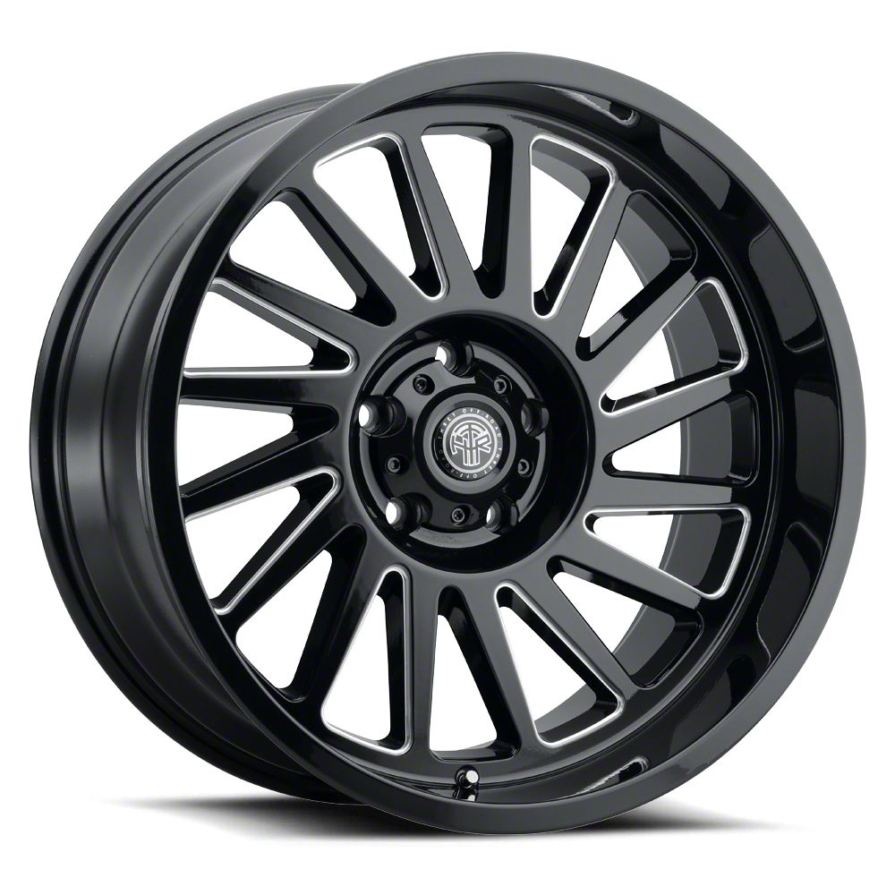 The 22x10 Thret Offroad Omega Gloss Black Milled 6-Lug Wheel; 22x10; -21mm Offset is completed in a high-quality gloss black finish with steel milled accents, which is sure to turn heads. There is a durable clear coat for extra protection and enhanced appearance that can withstand the rigors of the road.