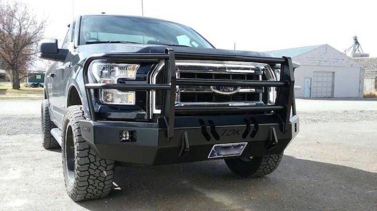 Tough Off-Road Protection. Install this Throttle Down Kustoms Standard Front Bumper with Grille Guard in Bare Metal on your F-150 to boost its style and enhance front protection. With its full-width configuration and tough grille guard, this front armor provides a tough layer of protection for your truck’s most vulnerable parts. It also perfectly follows the contours of your truck’s front-end and reinforces the commanding stance.
