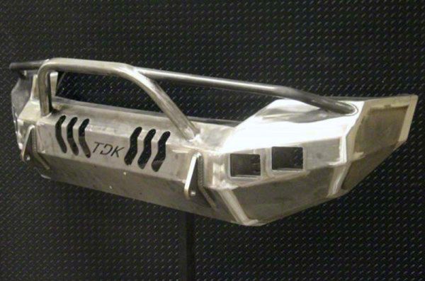 Aggressive TDK Custom Styling. Elevate the look of your F-350 with this Throttle Down Kustoms Pre-Runner Front Bumper; Bare Metal. Made for the riders who face heavy duty jobs with heavy duty cars, this Steel Front Bumper is the ideal addition to your mean machine.