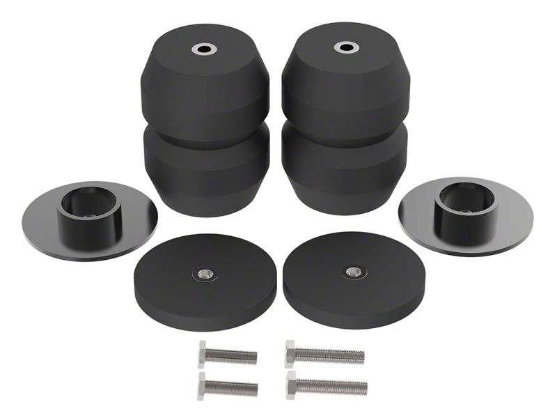 Rubber Springs. This set comes with two rubber springs that offer more force the more they are compressed. The springs are mounted into position underneath the bed of the truck and only provide assistance when a high level of weight is applied to the truck.