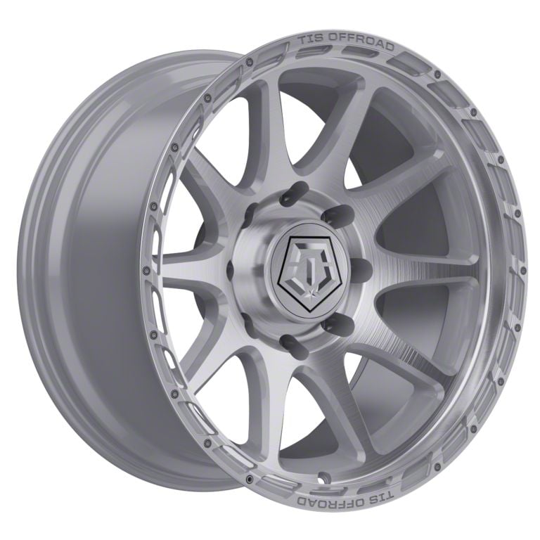 TIS 563 Silver Brushed Machined 8-Lug Wheel; 22x12; -44mm Offset is a visually striking choice, offering a combination of rugged durability and modern styling. Its design complements off-road and sporty vehicles alike, enhancing the overall aesthetic appeal.