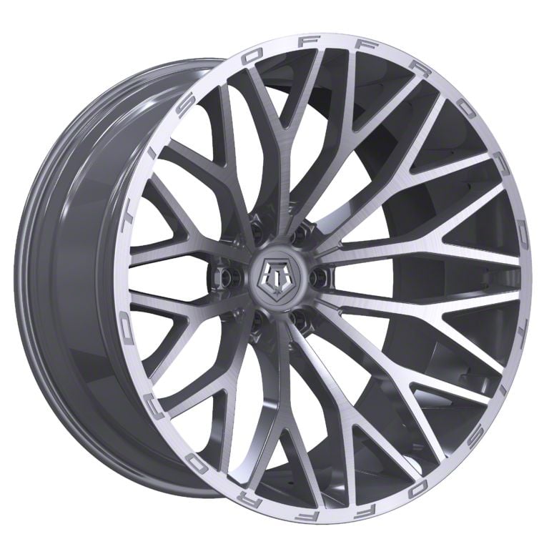 TIS 566 Gloss Silver with Brushed Face and Lip 8-Lug Wheel; 20x10; -24mm Offset is a visually striking choice, offering a combination of rugged durability and modern styling. Its design complements off-road and sporty vehicles alike, enhancing the overall aesthetic appeal.