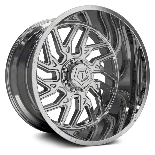The 22x14 TIS 544C Chrome 6-Lug Wheel underwent a 3-step plating process. First, is copper that adheres to the wheel for a smooth foundation. Next is nickel for durability, and finished in chrome for a bright appearance.