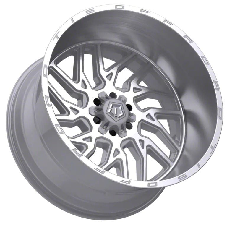 TIS 544 Gloss Silver with Brushed Face and Lip 8-Lug Wheel; 22x12; -44mm Offset is a visually striking choice, offering a combination of rugged durability and modern styling. Its design complements off-road and sporty vehicles alike, enhancing the overall aesthetic appeal.