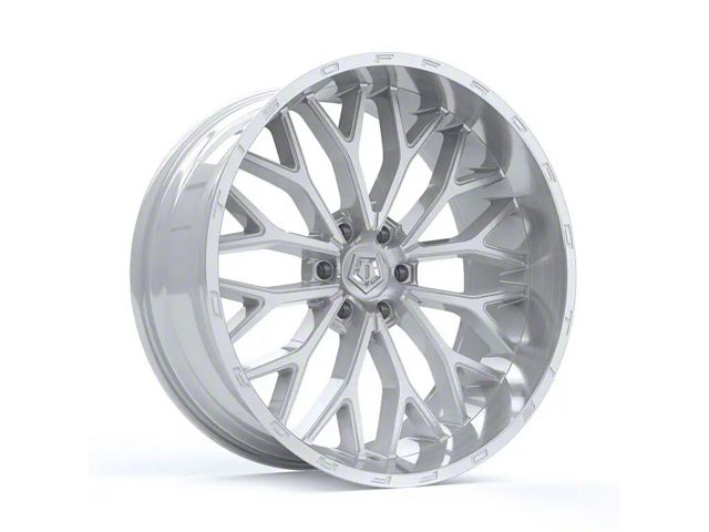 TIS 565 Gloss Silver with Brushed Face and Lip 8-Lug Wheel; 22x12; -44mm Offset is a visually striking choice, offering a combination of rugged durability and modern styling. Its design complements off-road and sporty vehicles alike, enhancing the overall aesthetic appeal.