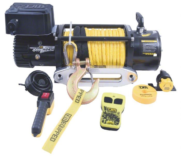 Description. THIS REPLACES PART 947TJMTQ12D - This TJM Torq 12,000lb (5440kg) electric winch comes standard with high quality synthetic rope for easier handling and improved performance. A TJM winch will provide the right amount of 'grunt' in any situation, thanks to the carefully engineered balance of power and speed. For those who enjoy a challenge, owning a TJM winch provides you with the freedom to visit more places. When you're off the beaten track, stuck and lacking traction, it's not always as simple as relying on a mate with traction to bale you out. Steep inclines and muddy conditions are problematic and adding a second vehicle to the dilemma doesn't help anybody. Using a TJM winch, with a wireless remote for added safety, is a much better way to successfully recover your vehicle.