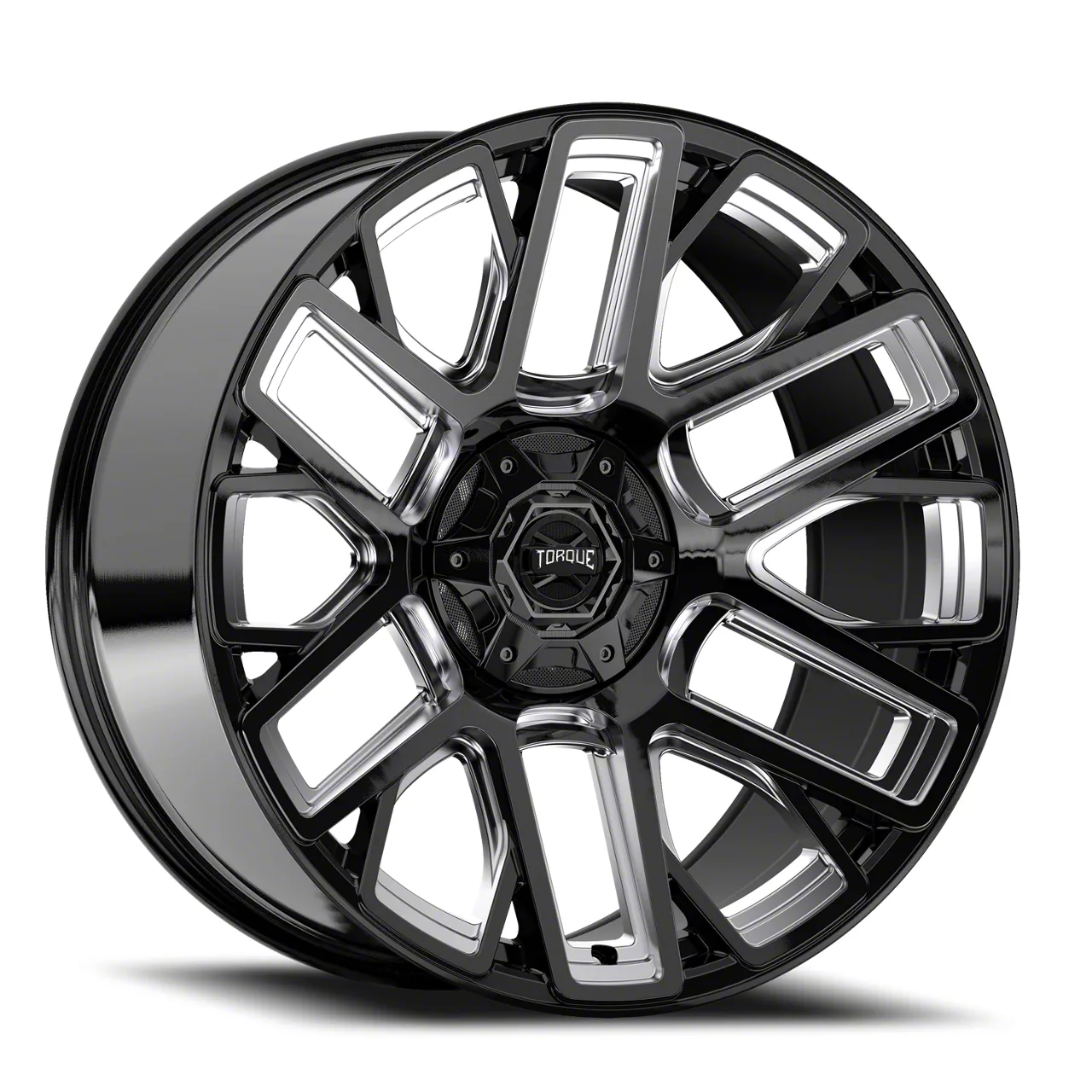 Torque Wheels TW428C Slope Gloss Black Premium Milling 6-Lug Wheel; 22x10; -18mm Offset offers a sleek and assertive aesthetic that enhances a vehicle's visual presence. Its gloss black finish amplifies the appeal, making it a great match for bold styling themes. This wheel brings a refined edge to any build while maintaining a confident stance on the road. Crafted to elevate the appearance of a wide range of vehicles.