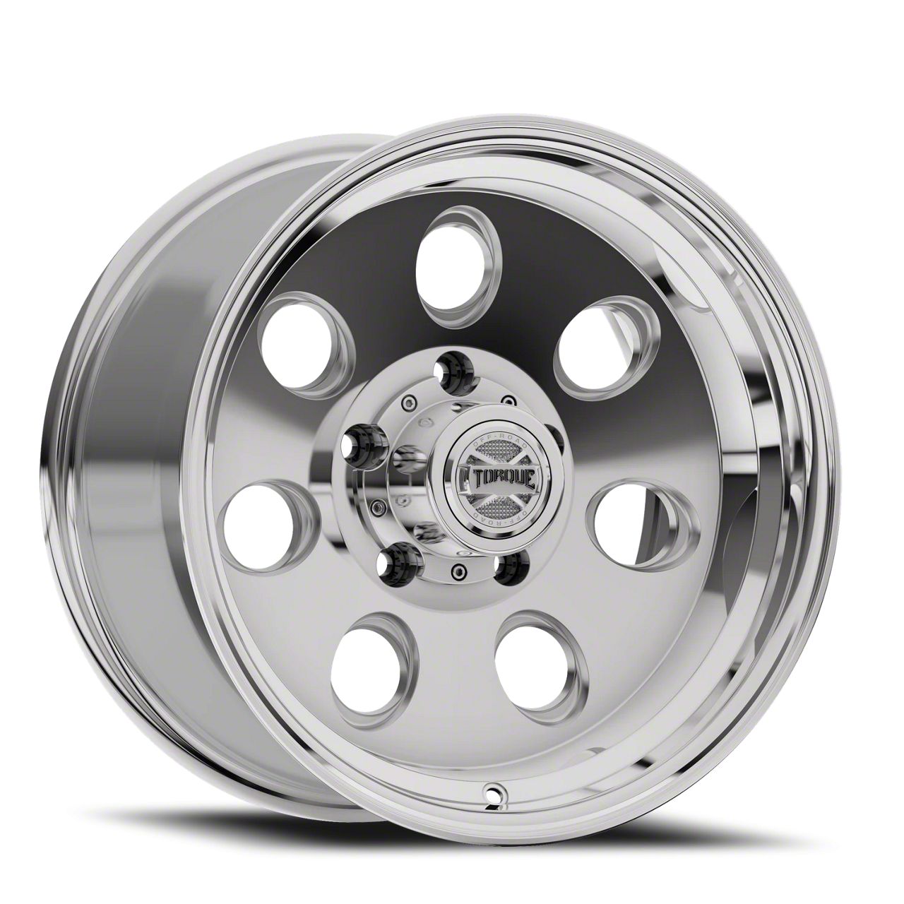 The 17x9 Torque Wheels TW425C Heritage Polished 5-Lug Wheel; 17x9; -12mm Offset is completed in a high-quality polished finish, which is sure to turn heads. There is a durable clear coat for extra protection and enhanced appearance that can withstand the rigors of the road.