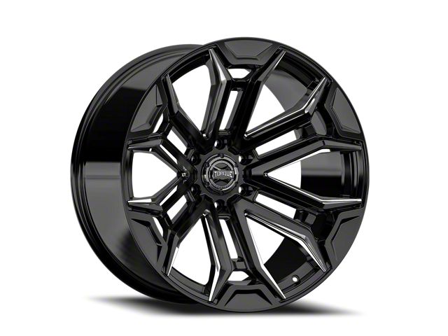 Torque Wheels TW415C Maverick Gloss Black Premium Milling 6-Lug Wheel; 20x9; -12mm Offset offers a sleek and assertive aesthetic that enhances a vehicle's visual presence. Its gloss black finish amplifies the appeal, making it a great match for bold styling themes. This wheel brings a refined edge to any build while maintaining a confident stance on the road. Crafted to elevate the appearance of a wide range of vehicles.