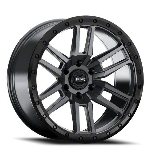 Torque Wheels TW411C Pritchett Anthracite with Black Lip 6-Lug Wheel; 18x9; -12mm Offset offers a sleek and assertive aesthetic that enhances a vehicle's visual presence. Its gloss black finish amplifies the appeal, making it a great match for bold styling themes. This wheel brings a refined edge to any build while maintaining a confident stance on the road. Crafted to elevate the appearance of a wide range of vehicles.