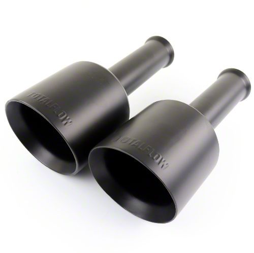 Give Your RAM Some Aggressive Styling. Especially on a blacked-out or sport model RAM, the factory-polished exhaust tips stick out like a sore thumb. However, the factory exhaust system is stylish and well put together; if only there were a way to easily alter the look of the factory tailpipes? Luckily for you, TOTALFLOW has engineered their 5-Inch Direct Fit Double Wall Exhaust Tips for the 5th generation RAM platform, utilizing your RAM's factory exhaust pipes and clamps for a simple installation. These sleek, black, dual-walled, slash-cut exhaust tips are sure to add aggressive styling to your RAM, ridding your RAM of its out-of-place polished exhaust tips for these stealthy, satin black replacements.Â