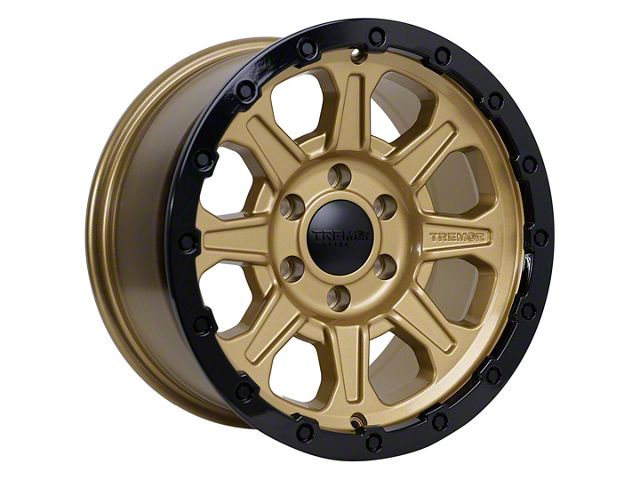 Tremor Wheels 103 Impact Gloss Gold with Gloss Black Lip 6-Lug Wheel; 20x9; 0mm Offset - Experience the sleek elegance of the Tremor Wheels wheel. Its matte black finish adds a touch of sophistication to your vehicle, enhancing its overall appearance without compromising on durability. Perfect for a variety of vehicle styles, this wheel is a testament to the brand's commitment to quality and aesthetic excellence.