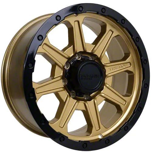 Tremor Wheels 103 Impact Gloss Gold with Gloss Black Lip 8-Lug Wheel; 17x8.5; 0mm Offset This Tremor Wheels 103 Impact Gloss Gold with Gloss Black Lip 8-Lug Wheel; 17x8.5; 0mm Offset brings a sleek and modern touch to your vehicle with its striking design. Its refined finish and bold styling make it an excellent choice for those looking to enhance their car’s visual appeal. Whether you're aiming for a sporty look or a more aggressive stance, this wheel stands out as a premium addition. Perfect for drivers who appreciate a stylish upgrade.