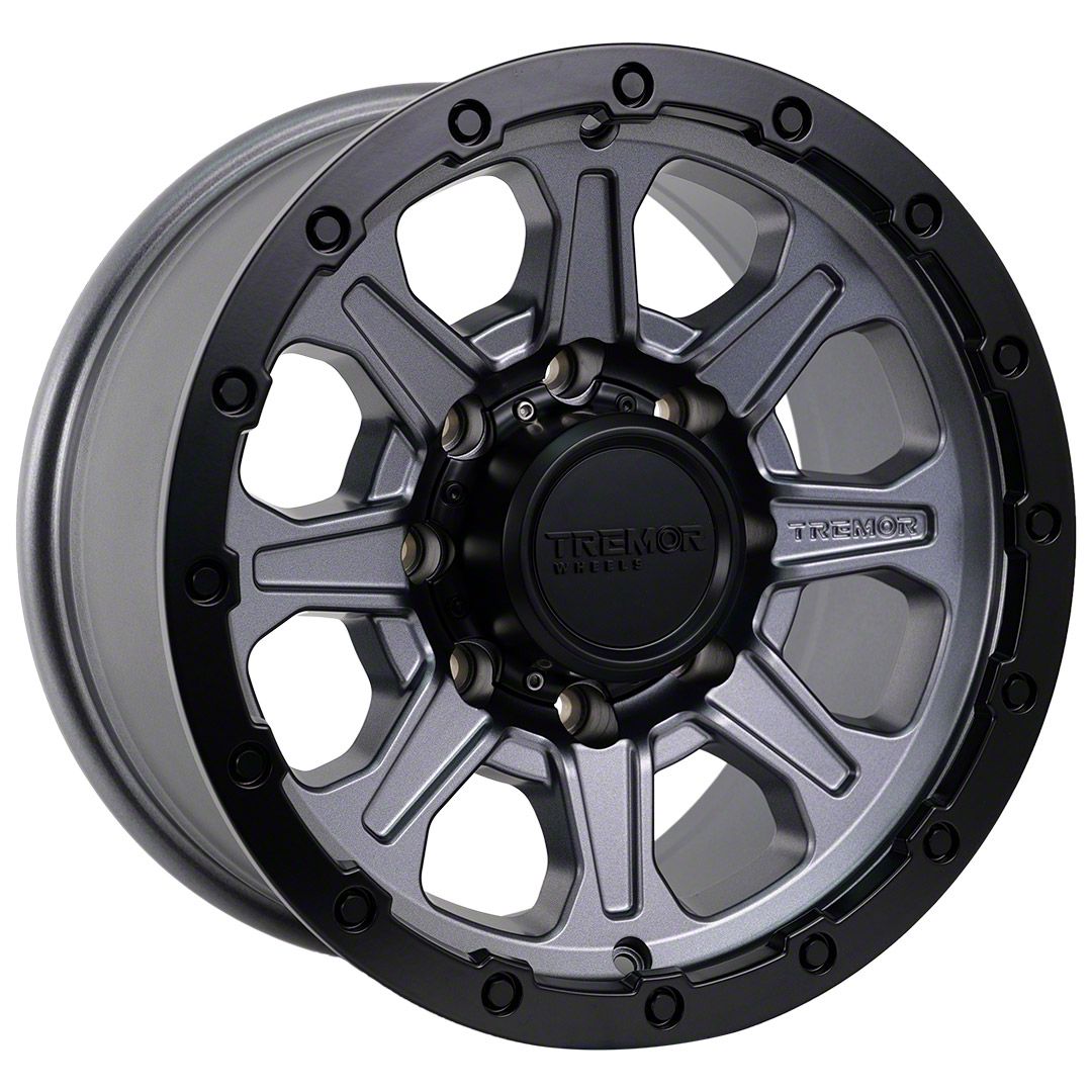 Application. This Tremor Wheels 103 Impact Graphite Grey with Black Lip 8-Lug Wheel; 17x8.5; 0mm Offset, with a backspacing of 4.75 Inch, 120.6mm and bolt pattern of 8 x 170mm (8 x 6.69-Inch), ensures precise alignment and stable driving. Designed to fit 202023-2026 F-20350 Super Duty SRW models, this wheel is sold individually.