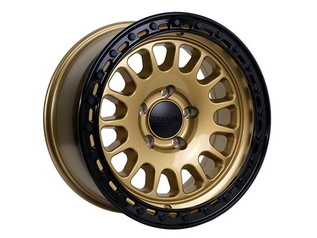 Tremor Wheels 104 Aftershock Gloss Gold with Gloss Black Lip 8-Lug Wheel; 17x8.5; 0mm Offset offers a sleek and modern design that enhances the visual appeal of any vehicle. Crafted with attention to detail, this wheel merges aesthetic elegance with a robust build, making it a fitting choice for those seeking a blend of style and durability.