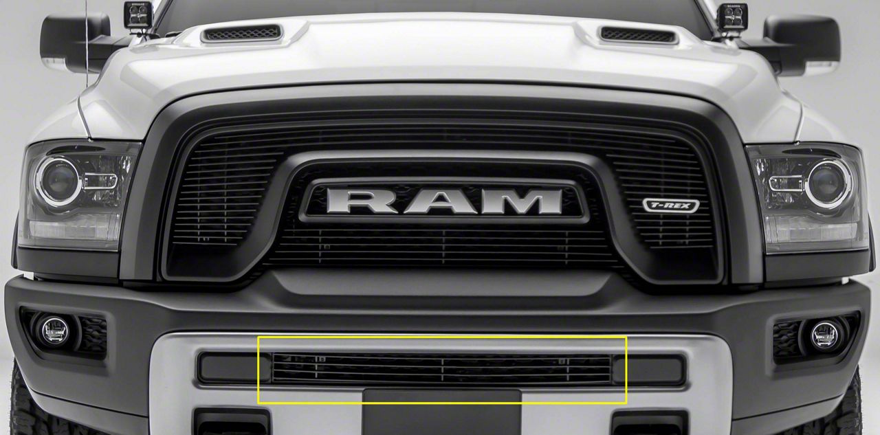 Application. This Black T-REX Billet Series Lower Bumper Grille Overlay fits all 2015-2018 RAM 1500 Rebel models.